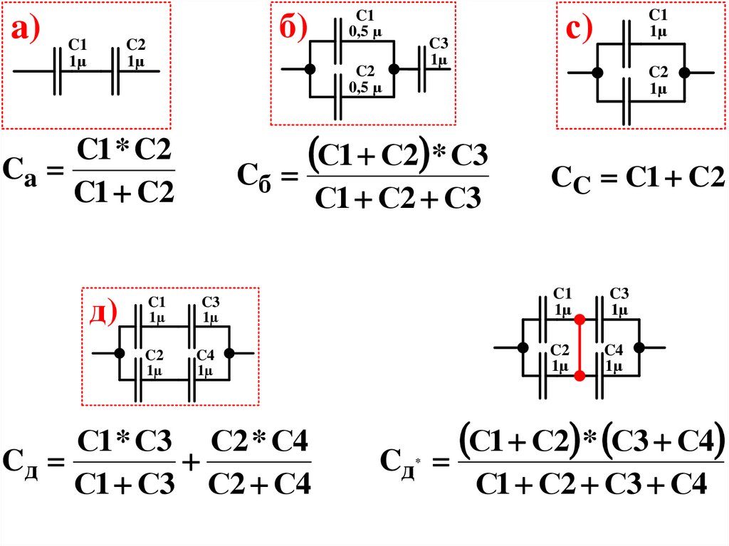 Чи зміниться ємність схеми д) якщо встановити перемичку