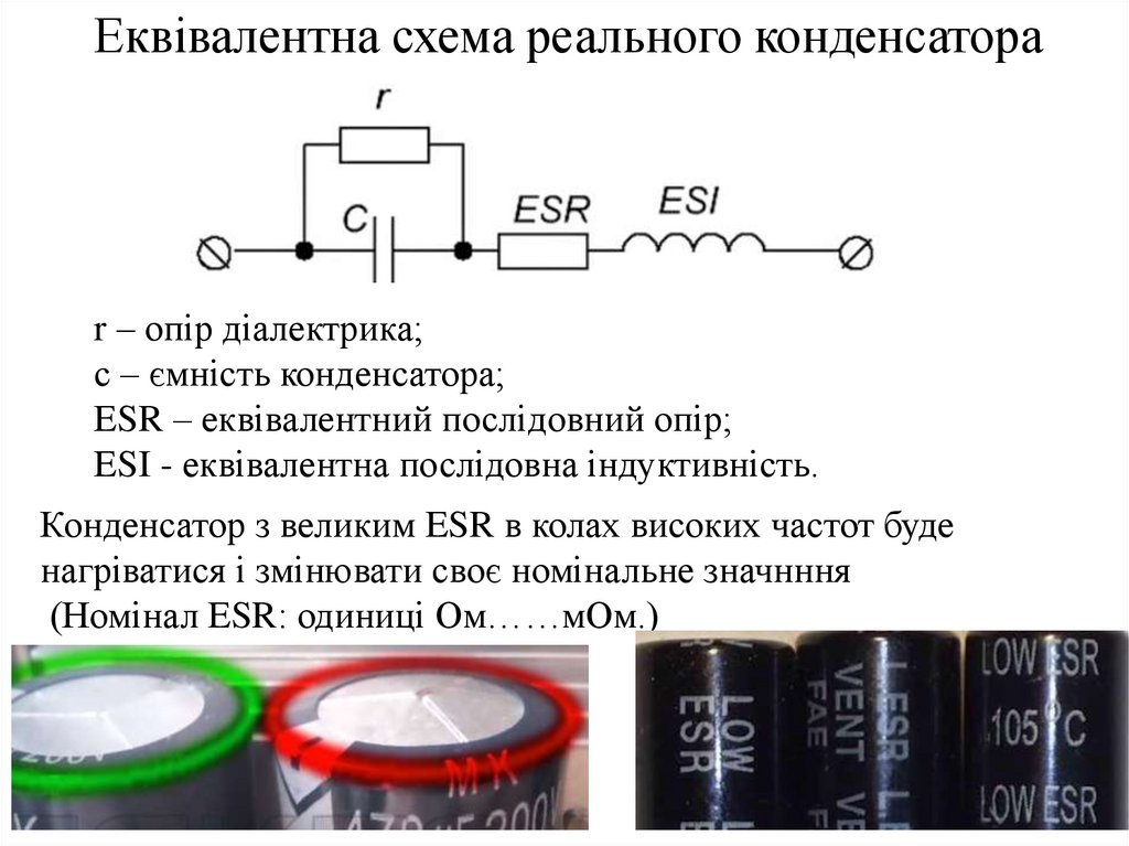 ESR – еквівалентний послідовний опір;