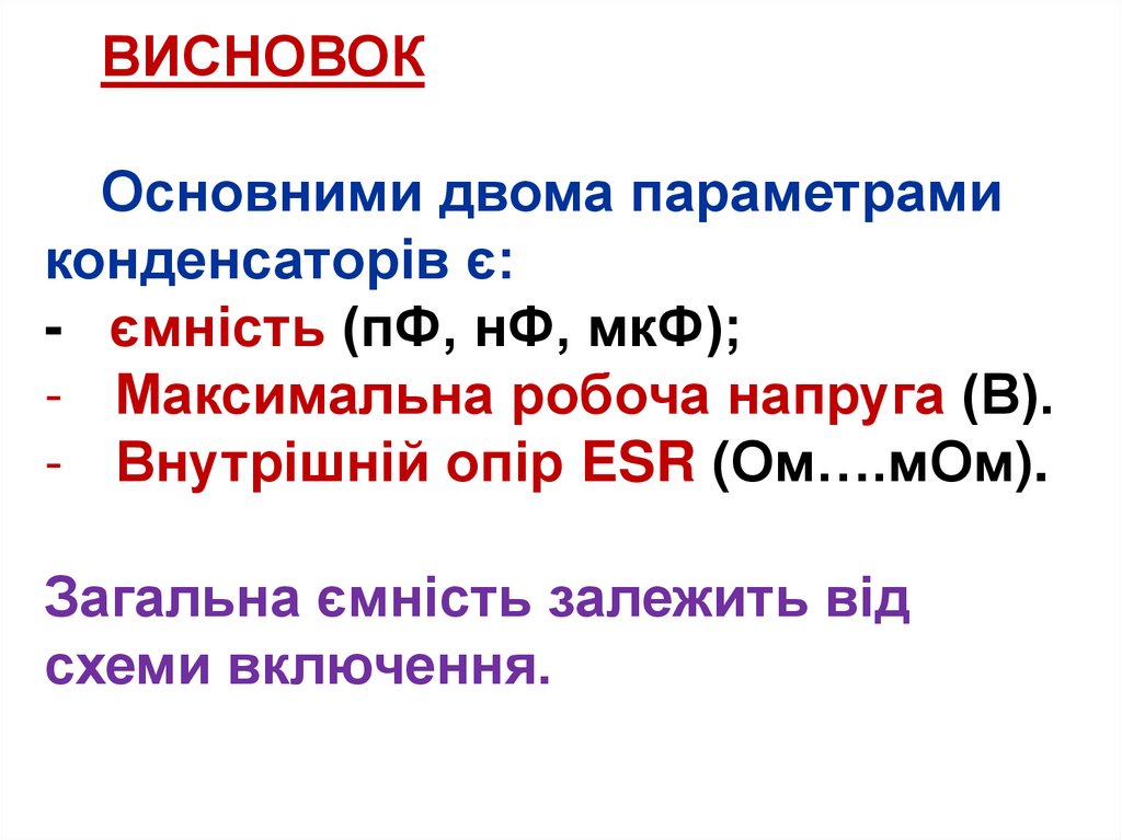 - Внутрішній опір ESR (Ом….мОм).