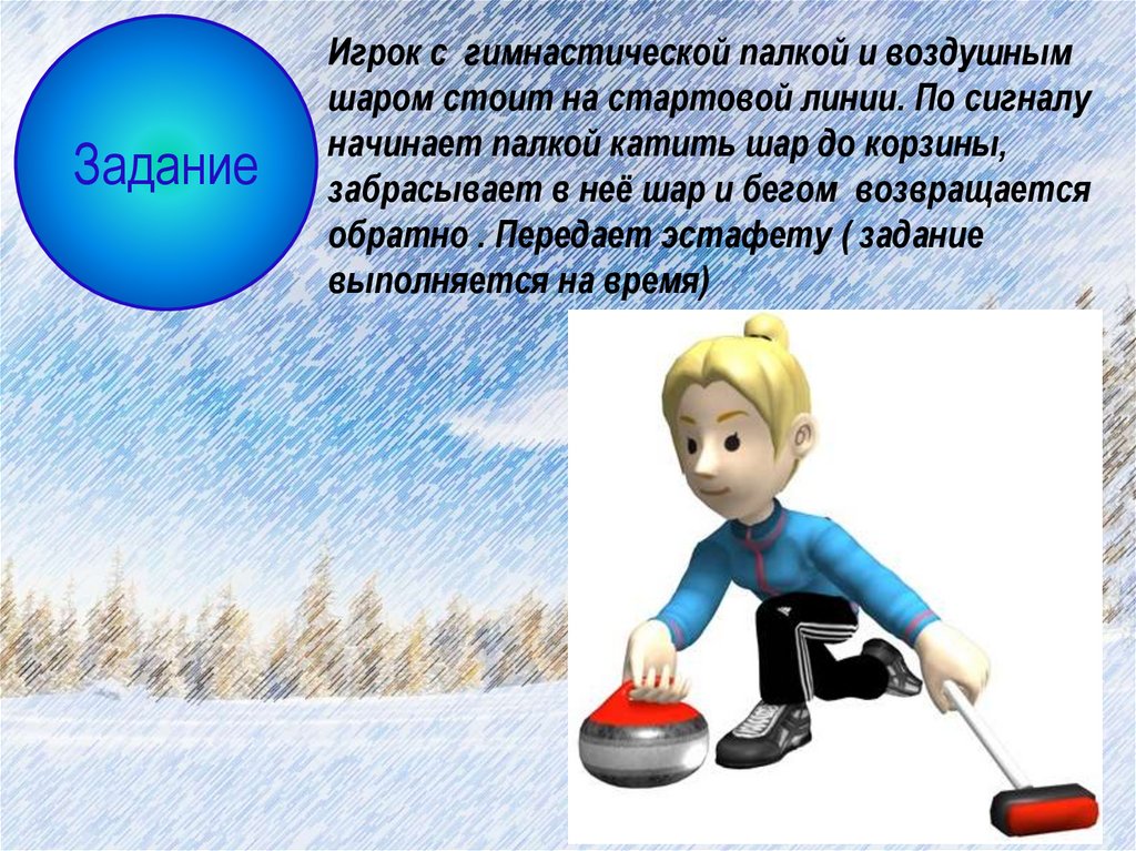 Кёрлинг-- командная спортивная игра на ледянойплощадке. Участники двух команд поочерёдно
