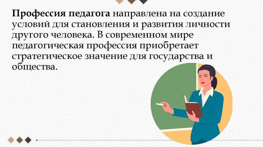 Профессия педагога направлена на созданиеусловий для становления и развития личности