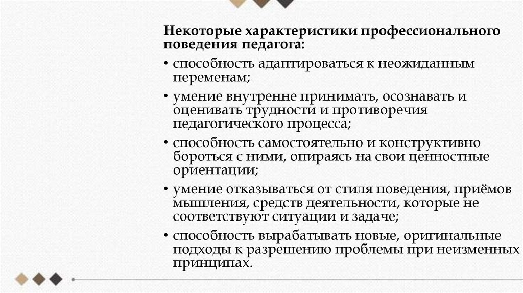 Некоторые характеристики профессиональногоповедения педагога: