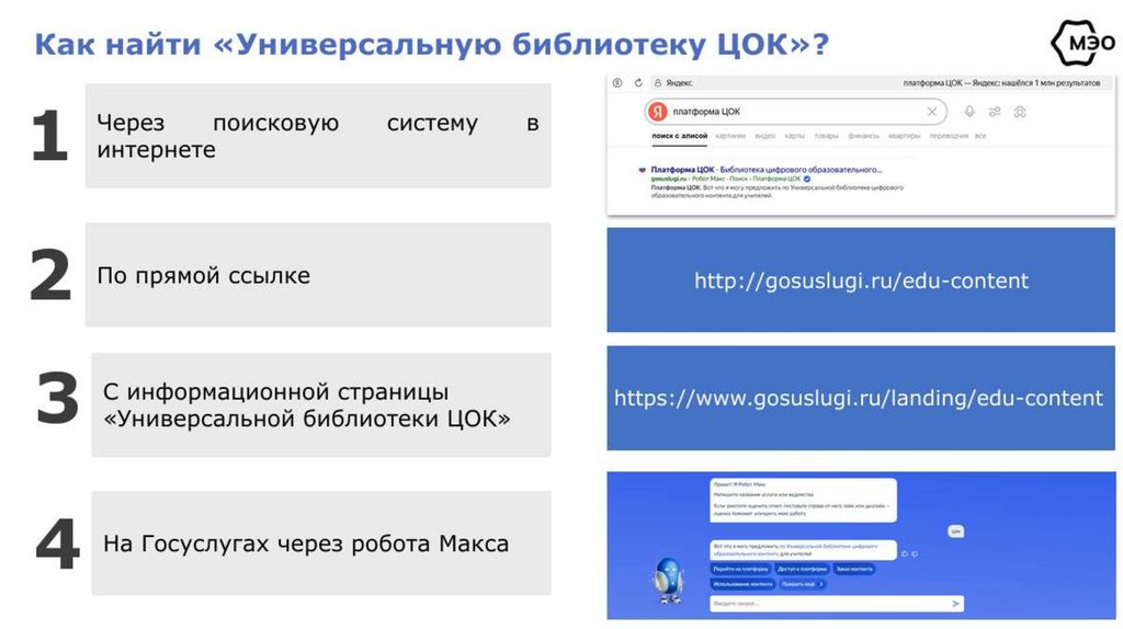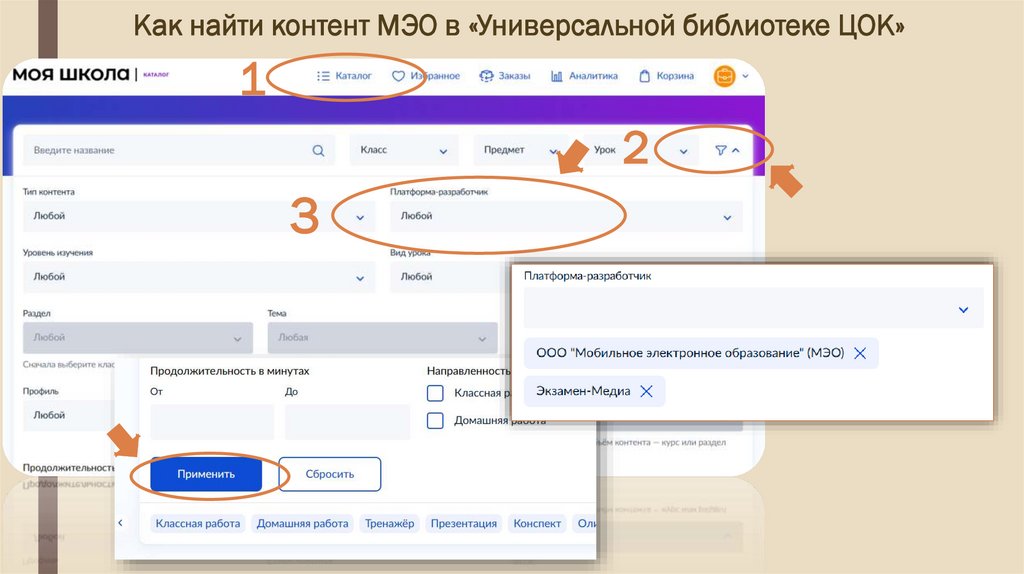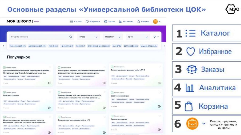 Как найти контент МЭО в «Универсальной библиотеке ЦОК»1