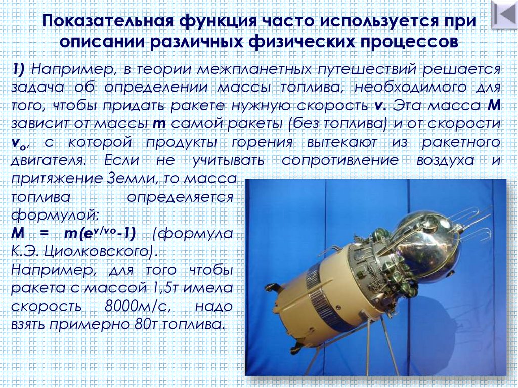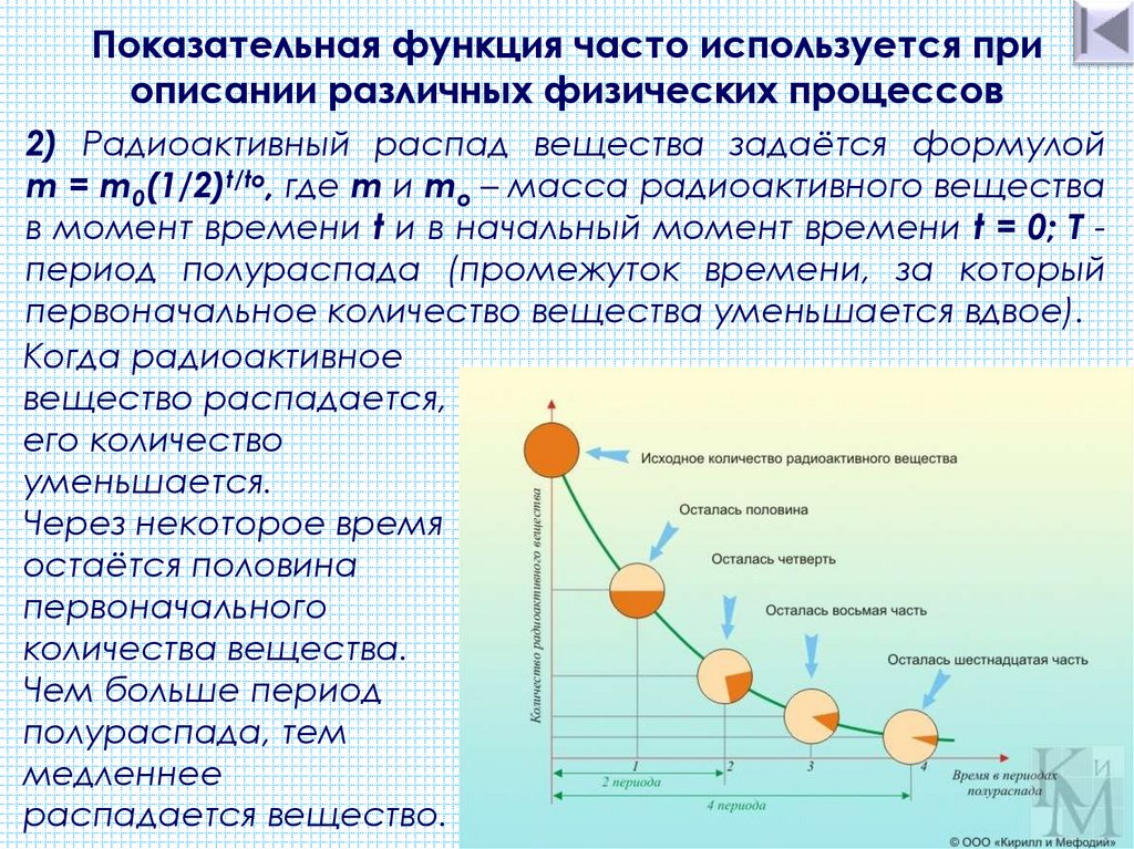Показательная функция часто используется приописании различных физических процессов