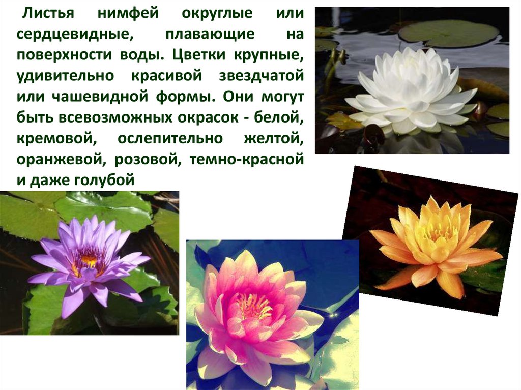 Листья нимфей округлые илисердцевидные,