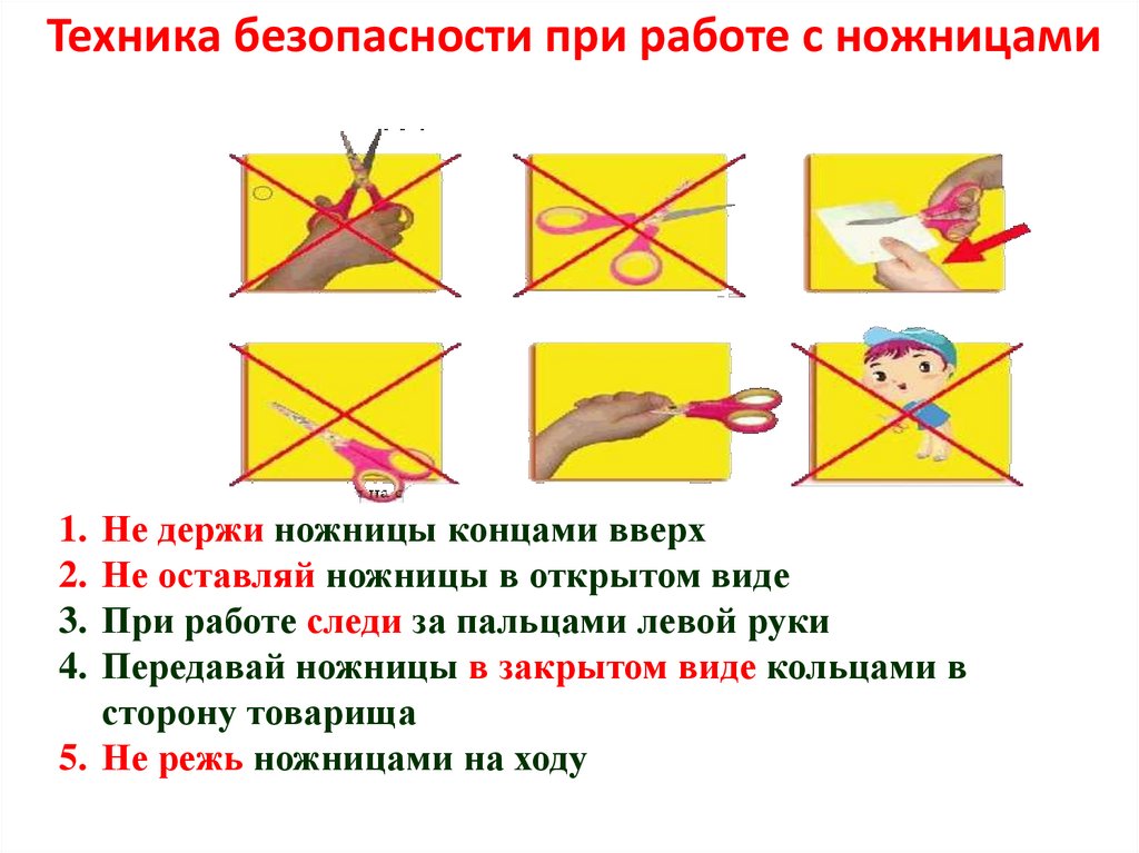 Техника безопасности при работе с ножницами1. Не держи ножницы концами вверх