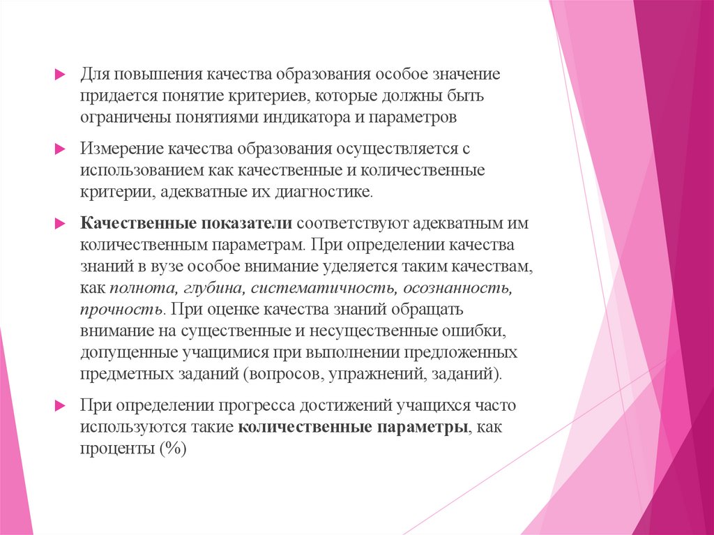 как полнота, глубина, систематичность, осознанность,
