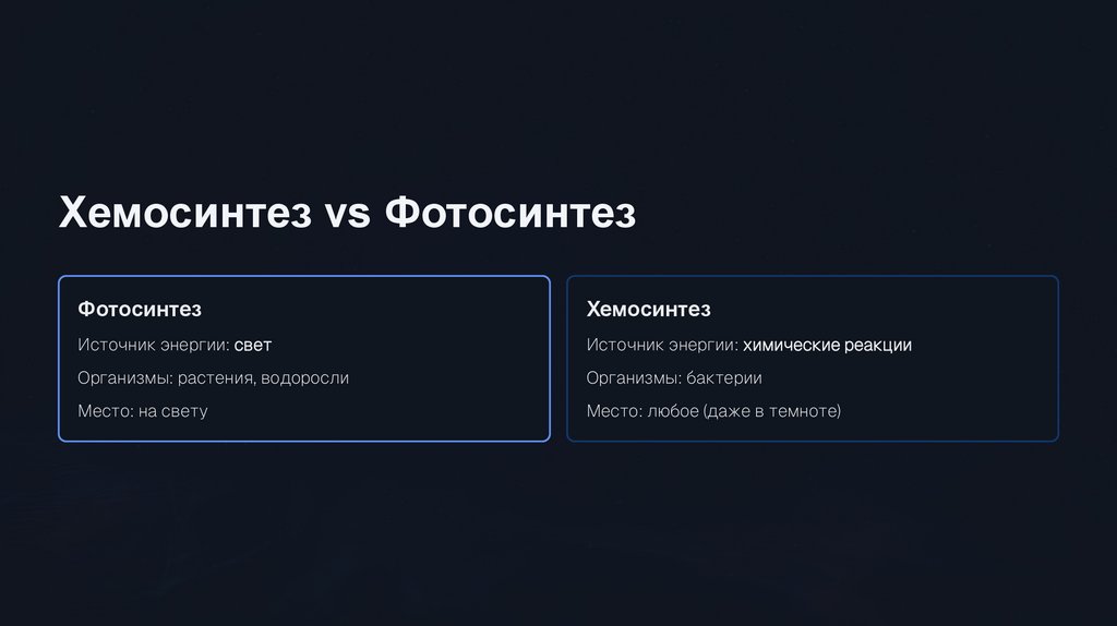 Хемосинтез vs ФотосинтезФотосинтез