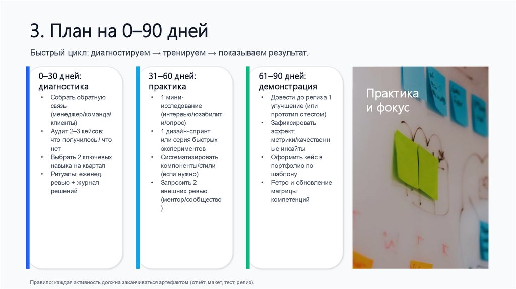 3. План на 0–90 днейБыстрый цикл: диагностируем → тренируем → показываем результат.