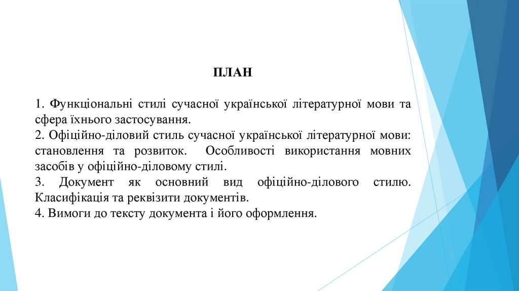 ПЛАН1. Функціональні стилі сучасної української літературної мови та