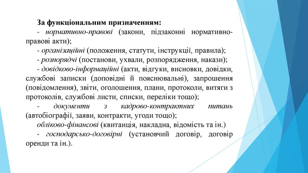 2) функціональне призначення (регулювання стосунків, повідомлення,