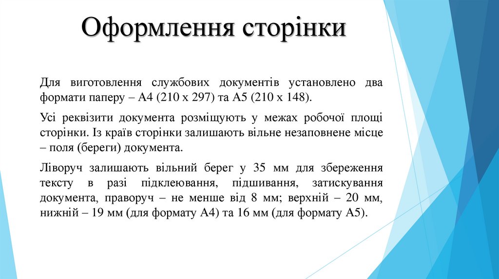 Оформлення сторінкиДля виготовлення службових документів установлено два