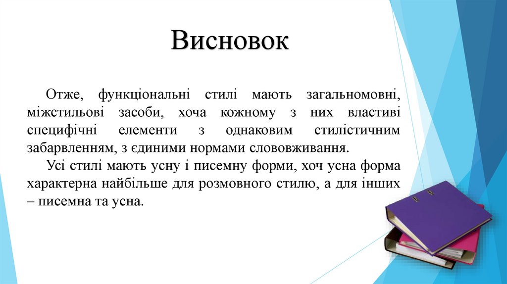 ВисновокОтже, функціональні стилі мають загальномовні,