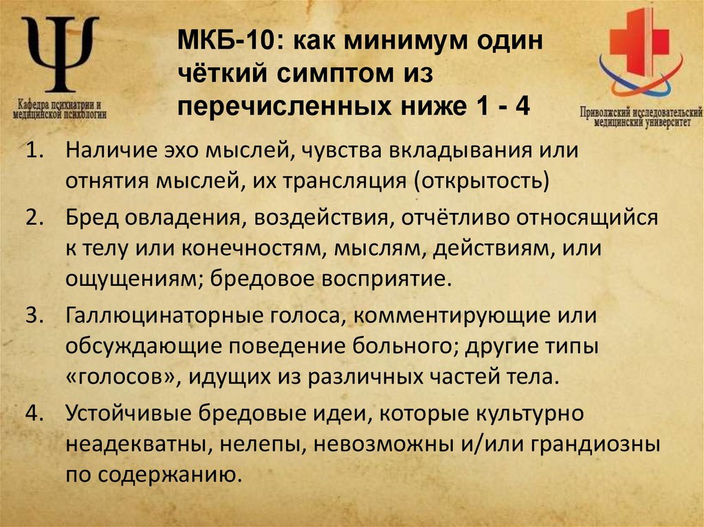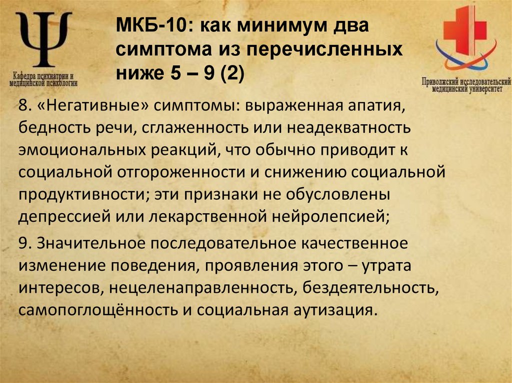 - диагностические критерии по МКБ-10