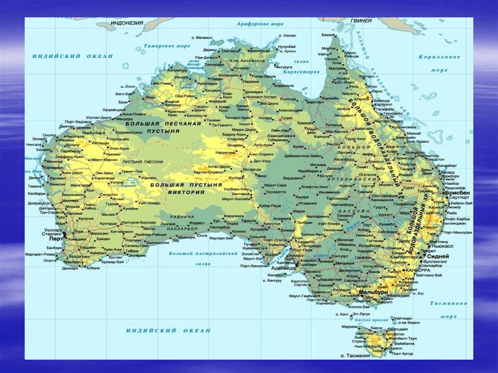Засушливый материк;Отсутствие высоких гор;
