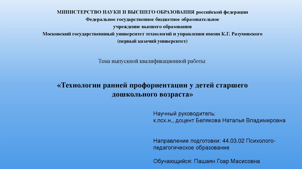 Московский государственнный университет тexнологий и управления имени К.Г. Разумовского