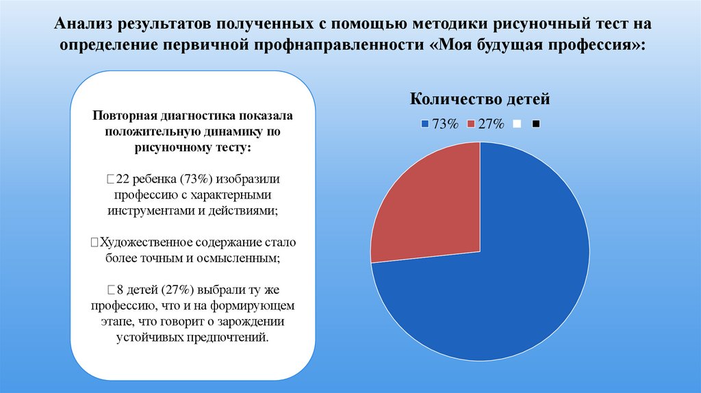 Анализ результатов полученных с помощью методики рисуночный тест наопределение первичной профнаправленности «Моя будущая профессия»: