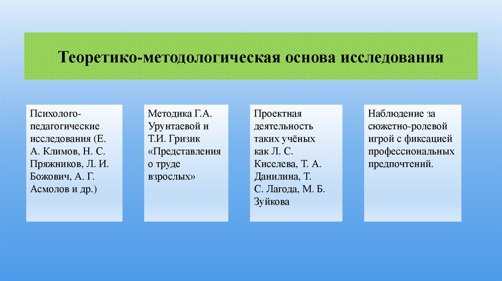 Теоретико-методологическая основа исследованияПсихологопедагогические