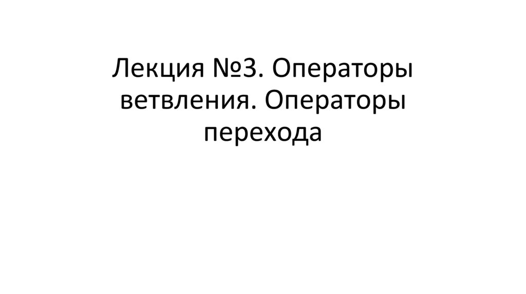 Лекция №3. Операторы ветвления. Операторы перехода (1)