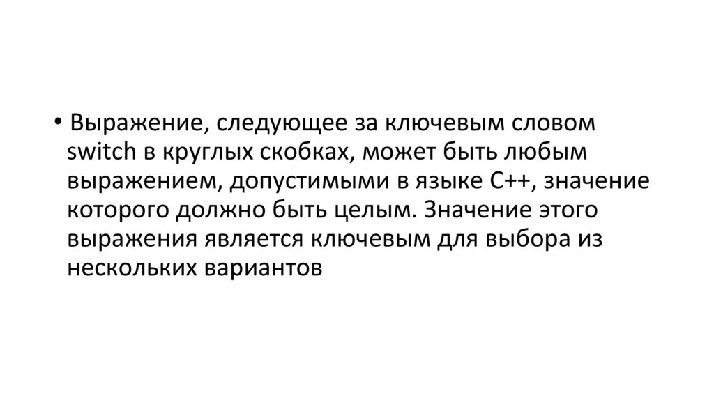 • Выражение, следующее за ключевым словомswitch в круглых скобках, может быть любым