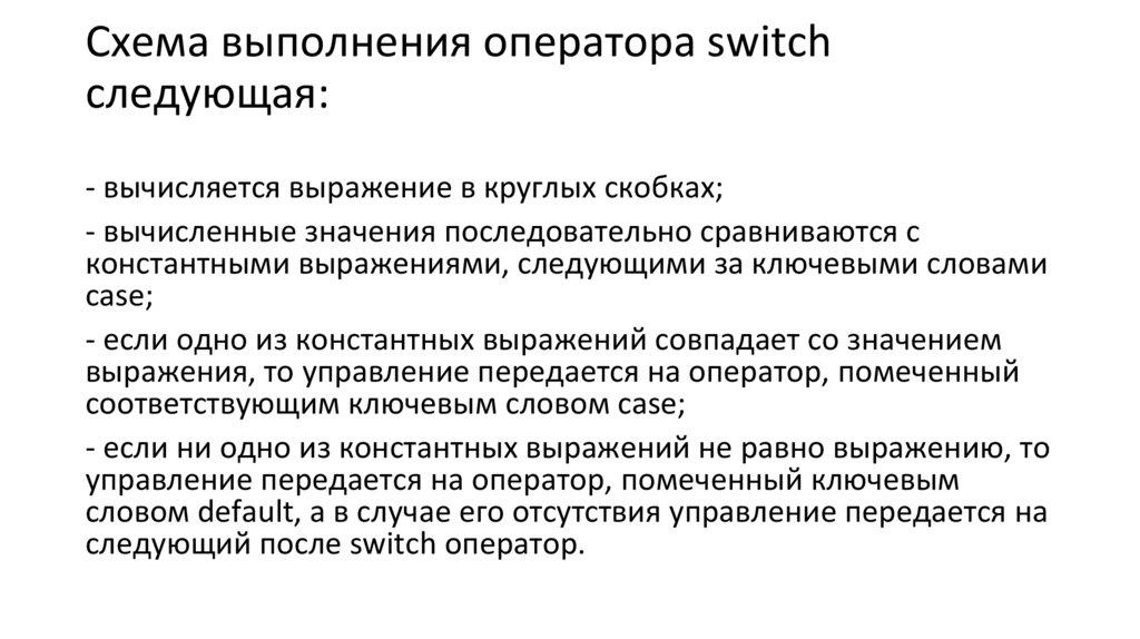 Схема выполнения оператора switchследующая: