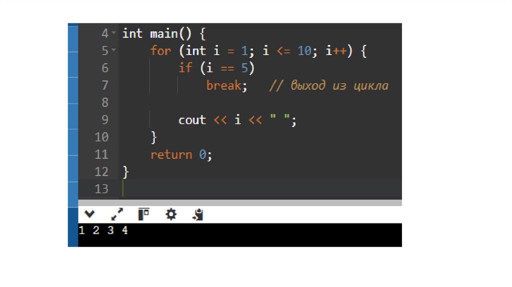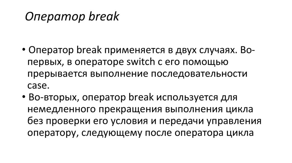 • Во-вторых, оператор break используется для