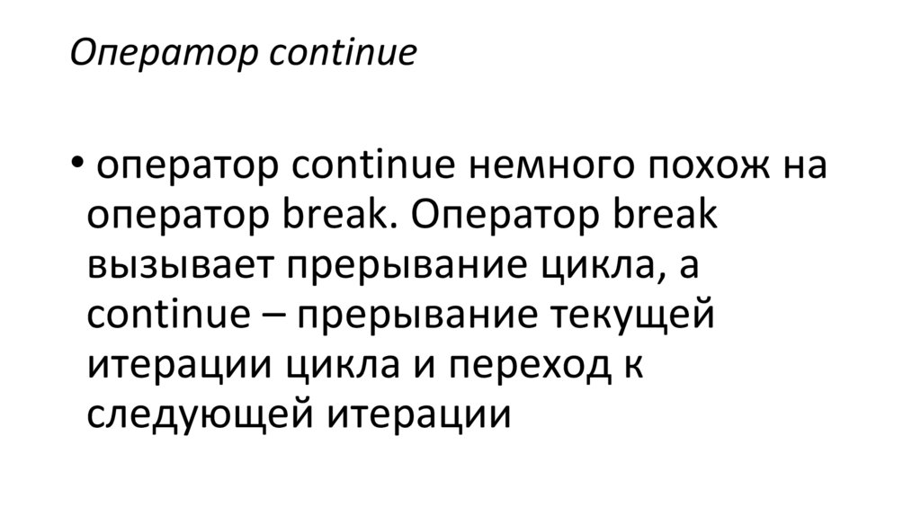 Оператор continue• оператор continue немного похож на