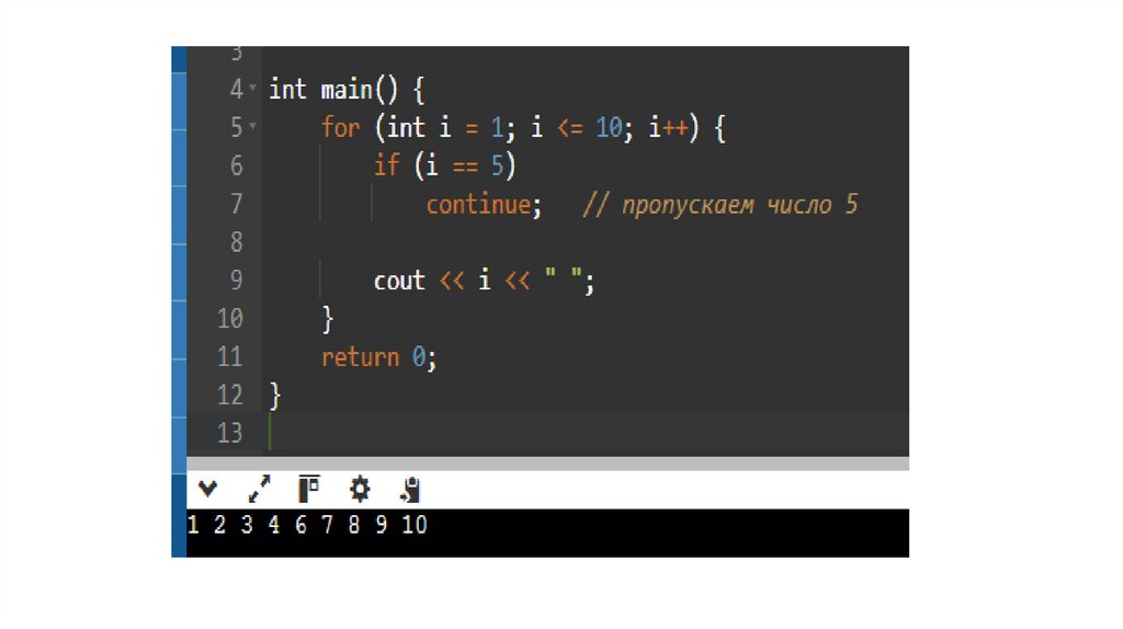 continue;// передается управление на начало цикла: }
