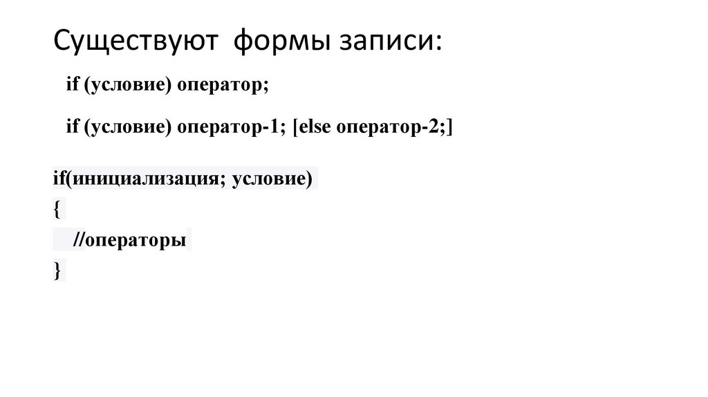 Существуют формы записи:if (условие) оператор;