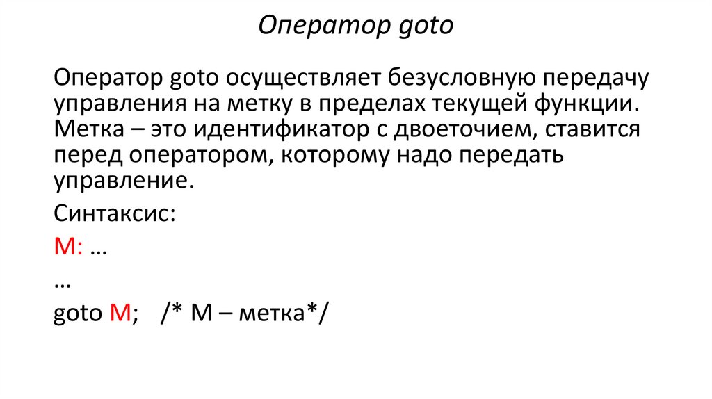 goto M; /* М – метка*/