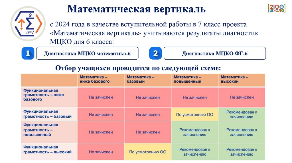 Математическая вертикальс 2024 года в качестве вступительной работы в 7 класс проекта