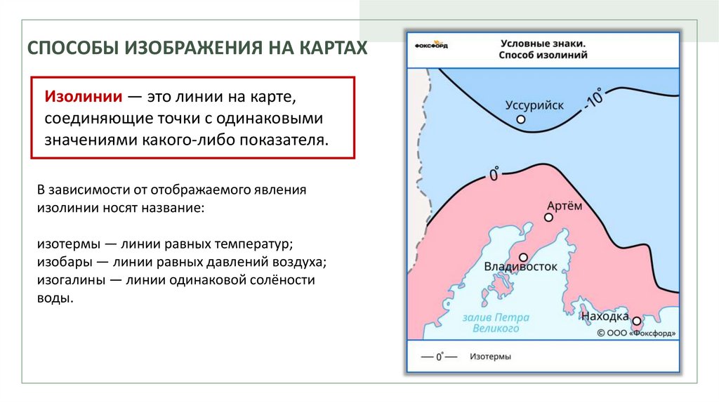 СПОСОБЫ ИЗОБРАЖЕНИЯ НА КАРТАХИзолинии — это линии на карте,