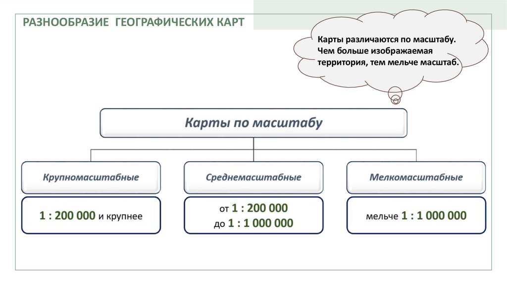 РАЗНООБРАЗИЕ ГЕОГРАФИЧЕСКИХ КАРТКарты различаются по масштабу.
