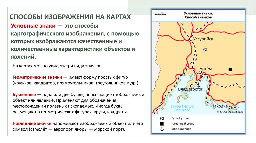 СПОСОБЫ ИЗОБРАЖЕНИЯ НА КАРТАХУсловные знаки — это способы