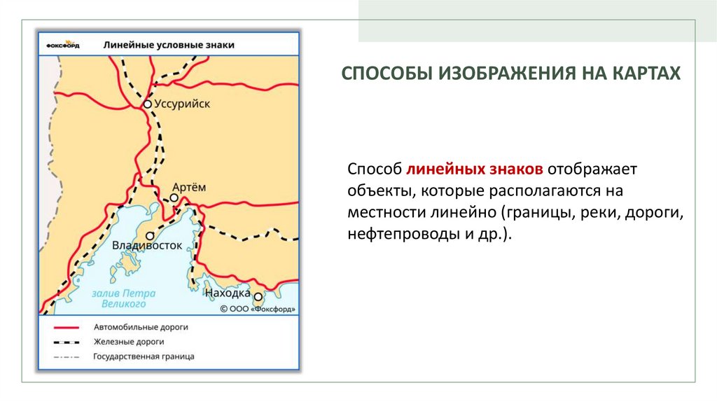 СПОСОБЫ ИЗОБРАЖЕНИЯ НА КАРТАХСпособ линейных знаков отображает