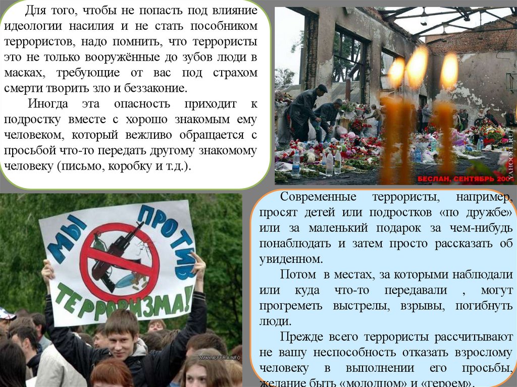 Для того, чтобы не попасть под влияниеидеологии насилия и не стать пособником