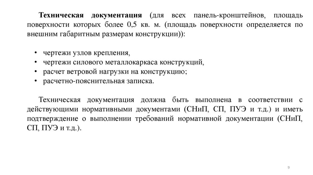 Техническая документация (для всех панель-кронштейнов, площадьповерхности которых более 0,5 кв. м. (площадь поверхности определяется по