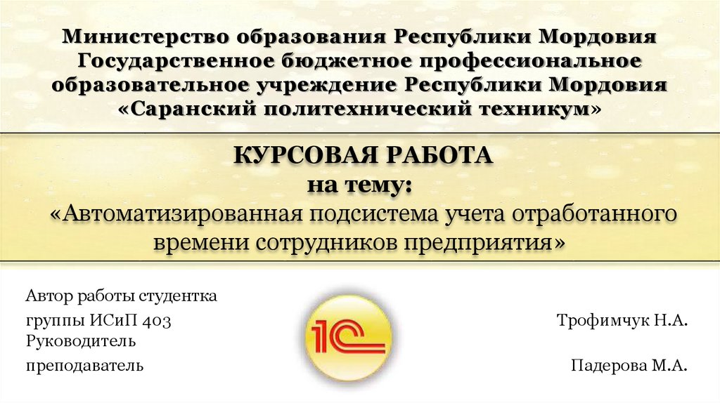 1. КУРСОВАЯ РАБОТА на тему: «Автоматизированная подсистема учета отработанного времени сотрудников предприятия»
