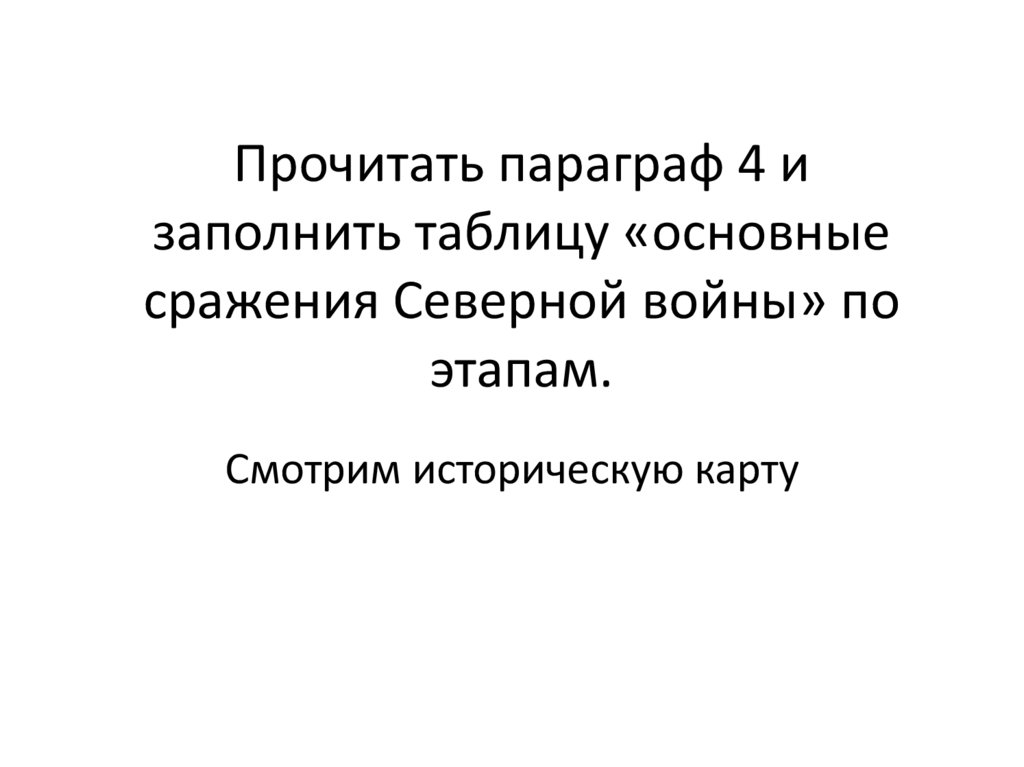 1. Прочитать параграф 4 и заполнить таблицу «основные сражения Северной войны» по этапам.