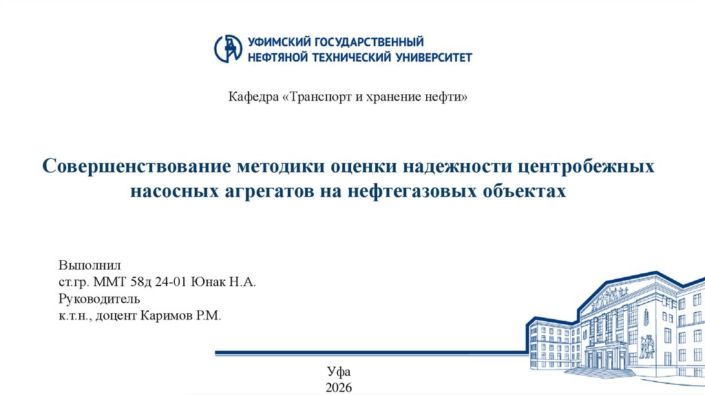 Кафедра «Транспорт и хранение нефти»Совершенствование методики оценки надежности центробежных
