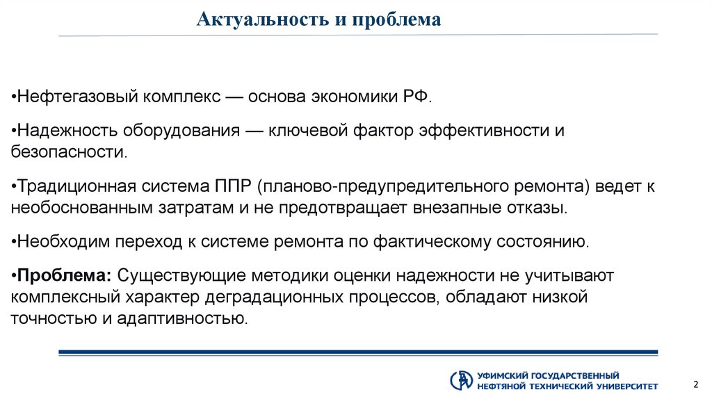 Актуальность и проблема•Нефтегазовый комплекс — основа экономики РФ.