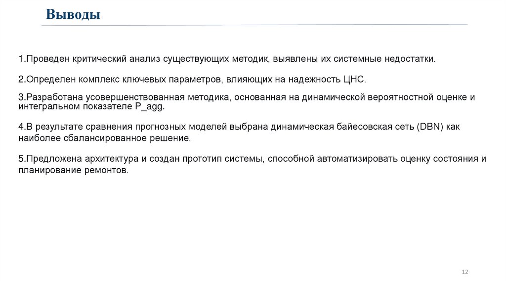 •Использование динамической байесовской сети (DBN) для прогнозирования отказов с высокой