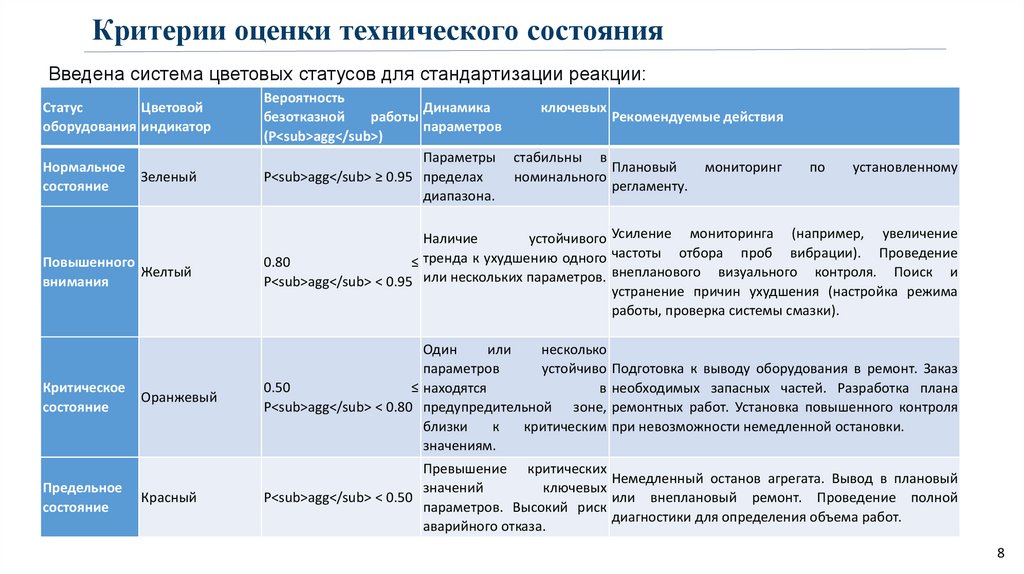 P<sub>agg</sub> < 0.80 предупредительной зоне, ремонтных работ. Установка повышенного контроля