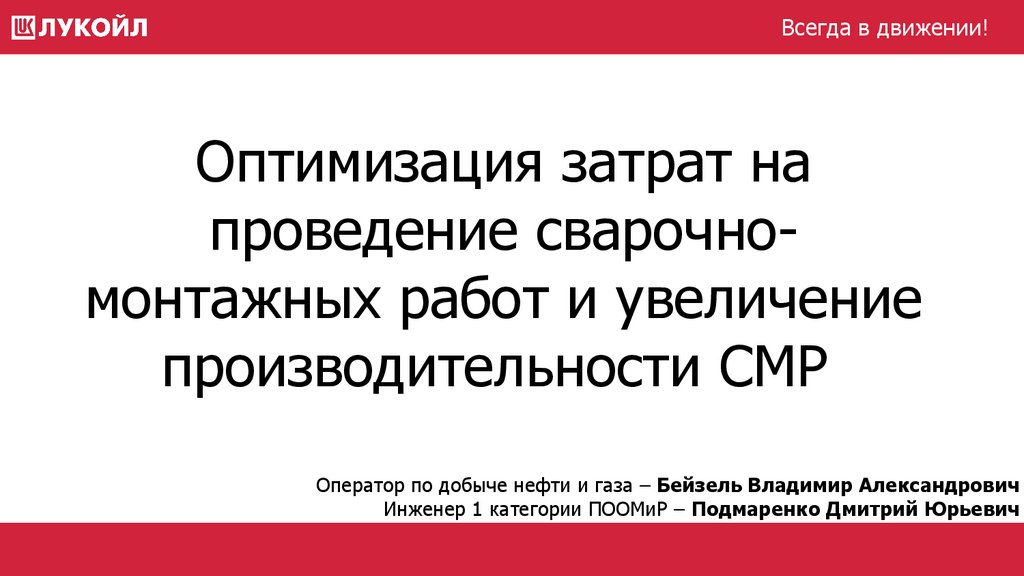 1. Оптимизация затрат на проведение сварочно-монтажных работ и увеличение производительности СМР
