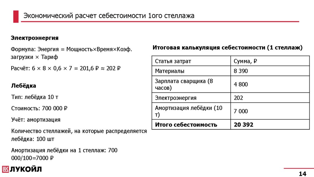 Расчёт для стеллажей