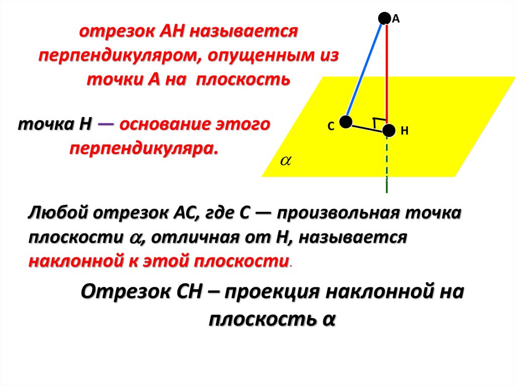 отрезок АН называетсяперпендикуляром, опущенным из