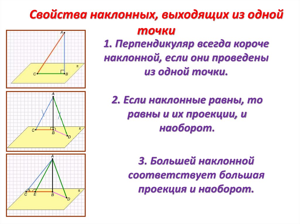 Свойства наклонных, выходящих из однойточки