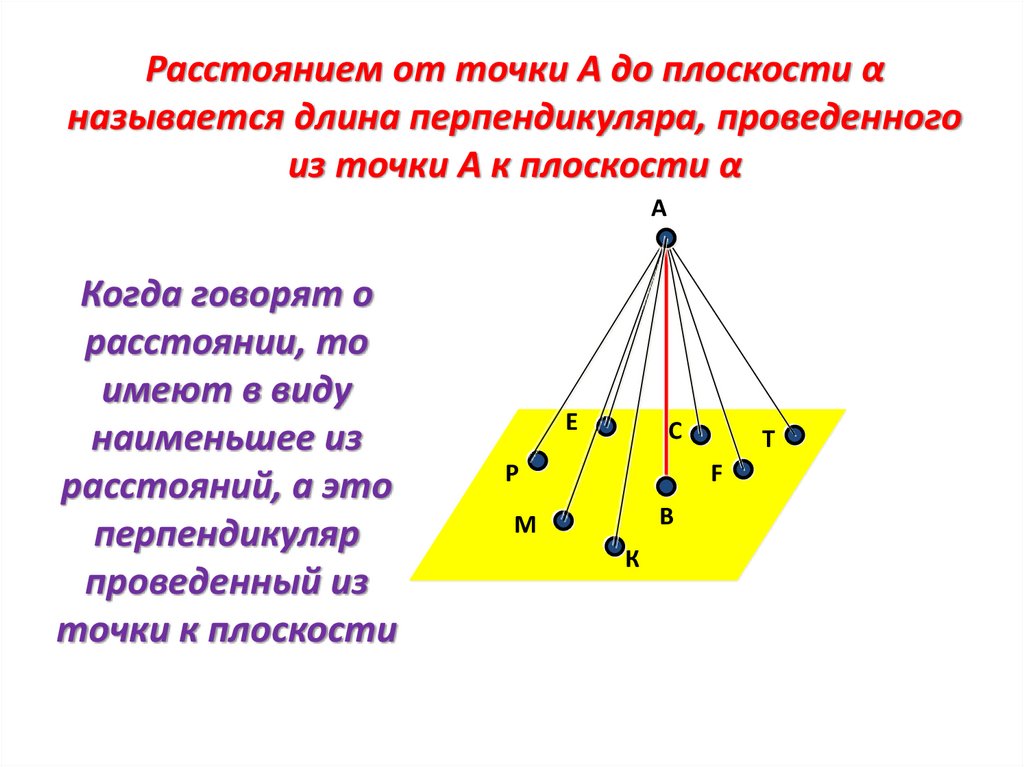 Расстоянием от точки А до плоскости αназывается длина перпендикуляра, проведенного