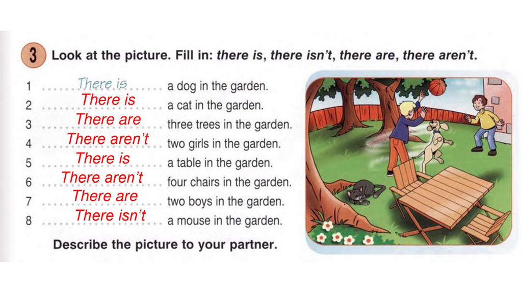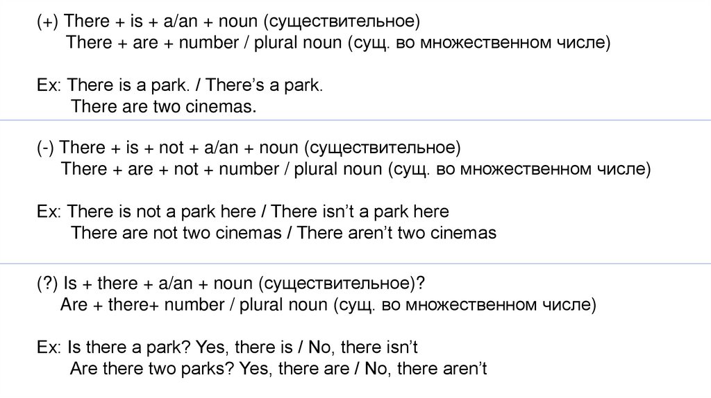 Ex: Is there a park? Yes, there is / No, there isn’t