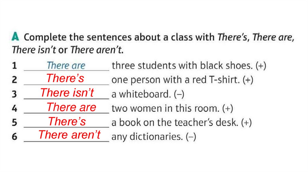 (+) There + is + a/an + noun (существительное)There + are + number / plural noun (сущ. во множественном числе)